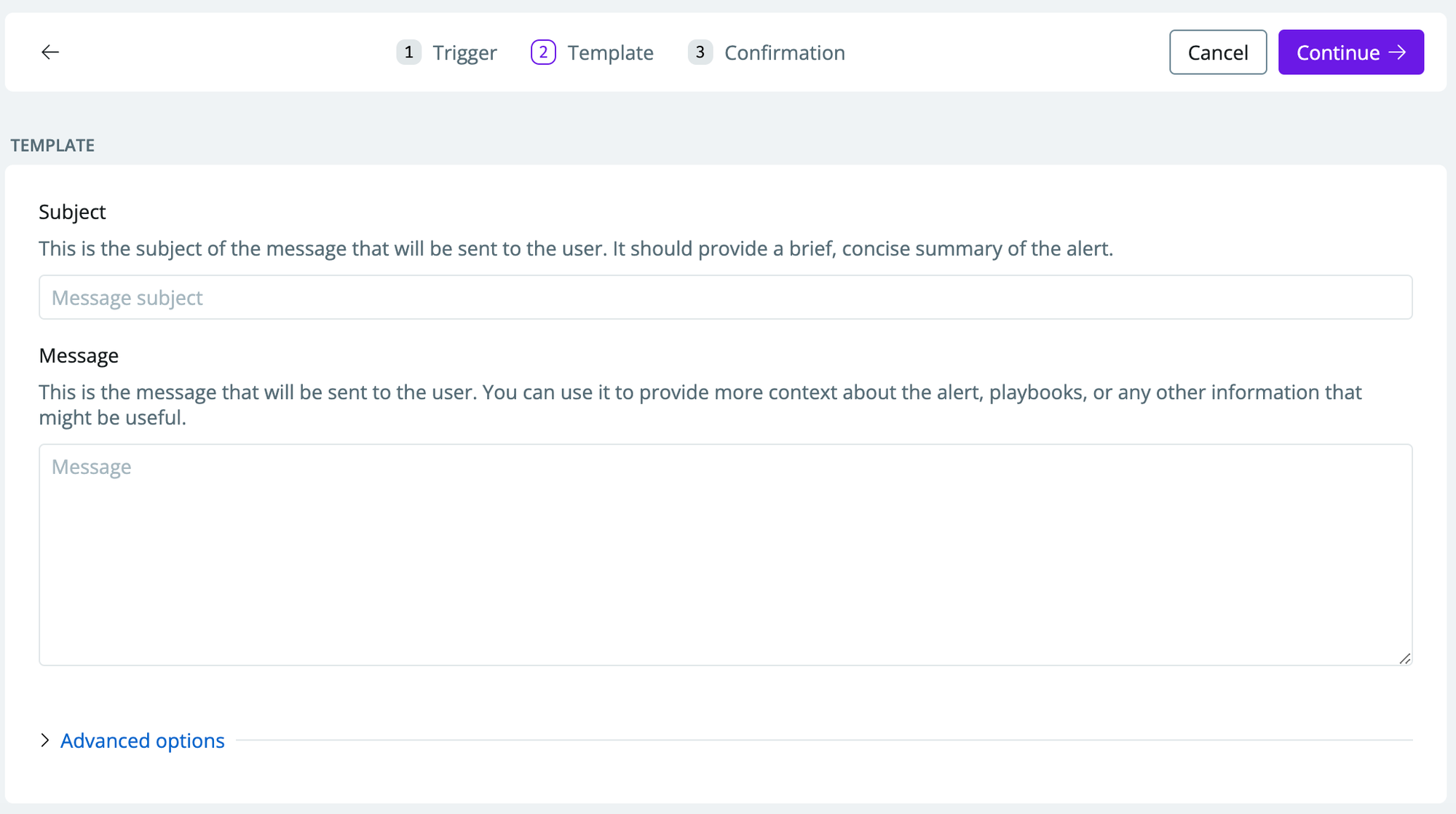 Tailor the template subject and message to a message that business users can understand (e.g.,